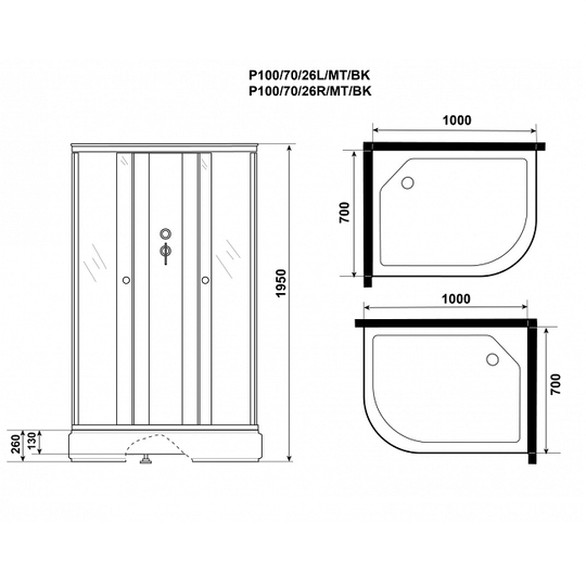 P100/70/26L/MT/BK; P100/70/26R/MT/BK (левая/правая ориентация)
