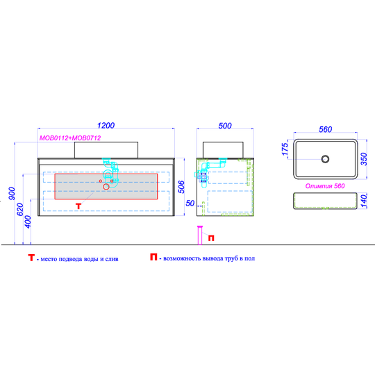 Тумба Mobi 120 оснащена двумя ящиками: основным и внутренним, скрытым за фасадом. Направляющие ящиков обеспечивают плавное и мягкое закрывание. Внутренний ящик тумб укомплектован пластиковым разделителем для хранения различных мелочей. Внутренняя отделка ящиков комбинированная: боковины – цвет бетон светлый, дно – дуб балтийский. В комплект тумбы Mobi входит специальный сифон, позволяющий экономить пространство мебели. Фасады, боковины и столешницы из МДФ толщиной всего 10 мм. Подходит любой наставной умывальник. При этом умывальник может устанавливаться в любом месте, а не только центру. На данную тумбу также можно установить один умывальник. Коллекция оснащена итальянскими навесами Camar, которые выдерживают нагрузку до 200 кг.