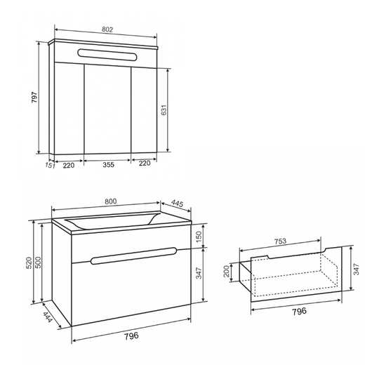 Зеркало-шкаф Olivia 80 оснащен тремя распашными зеркальными дверцами. Блок розетка/выключатель расположен внутри шкафа. Полки под хранение обеспечивают порядок внутри. Петли на дверцах со встроенным доводчиком.