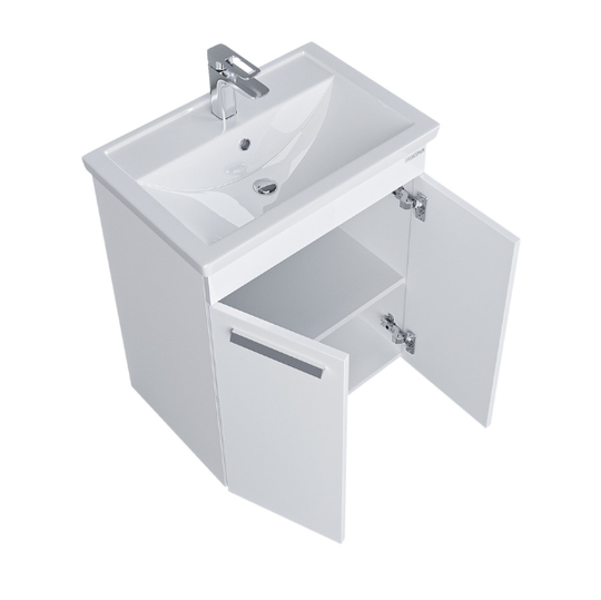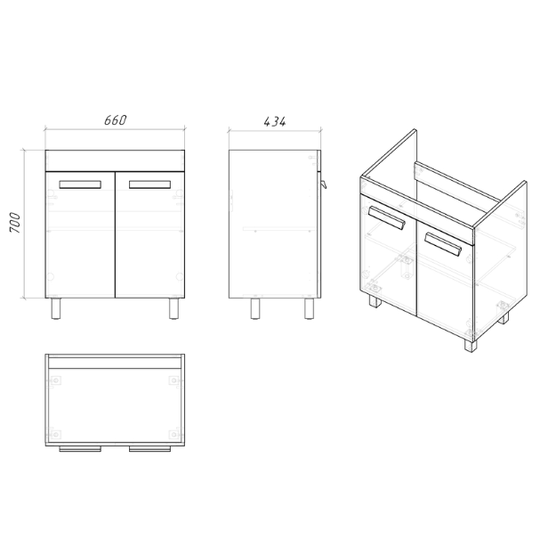 Мебель Grossman Нео 70 оснащена дверцами, за которыми спрятаны полочки. Петли с доводчиками гарантируют плавное и бесшумное закрывание. На фасадах удобно расположены стильные алюминиевые ручки в матовом хромированном цвете. Корпус и фасады изготовлены из МДФ с трехслойной краской, устойчивой к механическим воздействиям, перепадам температур и высокой влажности. Полочки из ЛДСП. Ножки тумбы прямоугольные, регулируются по высоте.