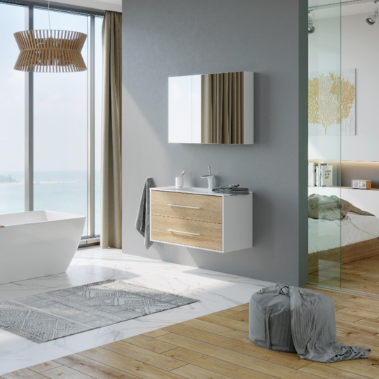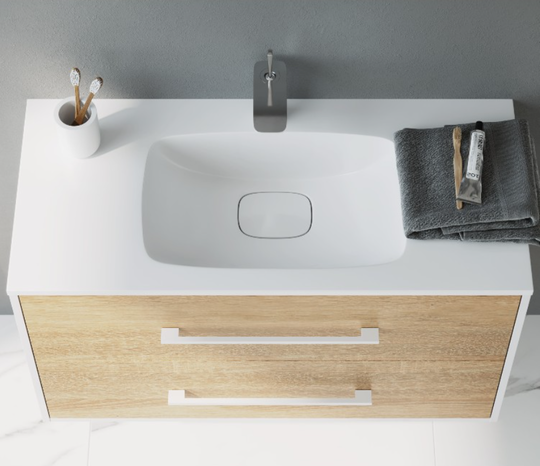 - Тумба Aqwella Майами 100 цвет "дуб сонома" с раковиной из литьевого мрамора Aqwella Malaga 100.