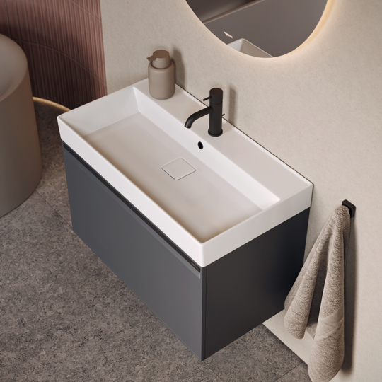 Тумба Pure 81 оснащена одним ящиком с плавным скольжением и мягким закрыванием.
