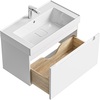 Подвесная тумба Ванкувер 81 оснащена одним ящиком с механизмом мягкого закрывания и тщательно организованным внутренним пространством с отделкой под дерево. Лаконичный фасад крашеный в белый цвет с интегрированной ручкой-зацепом подчеркивают чистоту форм и делают использование особенно удобным. Мебельный умывальник с декоративной вкладкой подчеркивает современный характер коллекции, а оптимальная глубина чаши обеспечивает комфортное ежедневное использование.