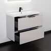 Подвесная тумба Comforty Селенга 80 с двумя вместительными выдвижными ящиками. Направляющие ящиков оборудованы системой плавного закрывания. Верхний ящик открывается черной профильной ручкой. Ручку устанавливать необязательно. Верхний ящик можно открыть за нижний край фасада. Для открытия нижнего ящика нужно потянуть верхний край фасада. Ящики выполнены из ВЛДСП контрастного черного цвета. Тумба подготовлена для подключению коммуникаций снизу и сзади.
