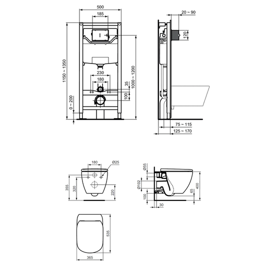 Инсталляция Ideal Standard ProSys Frame 120 M R020467:- Для монтажа перед капитальной стеной или между двумя гипсокартонными стенами (в соответствии с инструкцией);