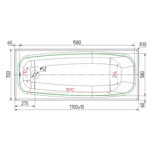 - Форма ванны: